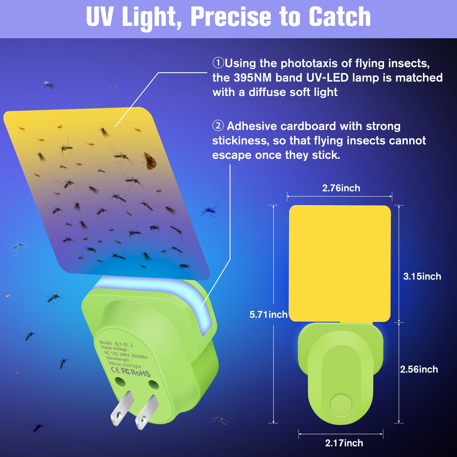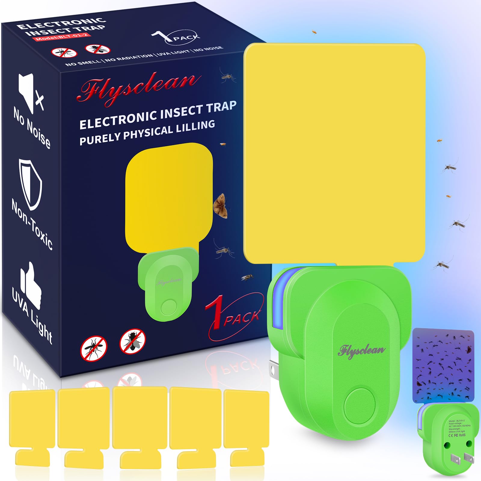 Pestvanish Flying Insect Trap Plug-In, Indoor Mosquito & Gnat Killer, Safe Non-Toxic UV Light Fly Catcher, Night Light Bug Trap with Sticky Pad for Flies, Gnats, Moths (1 Pack, Green)