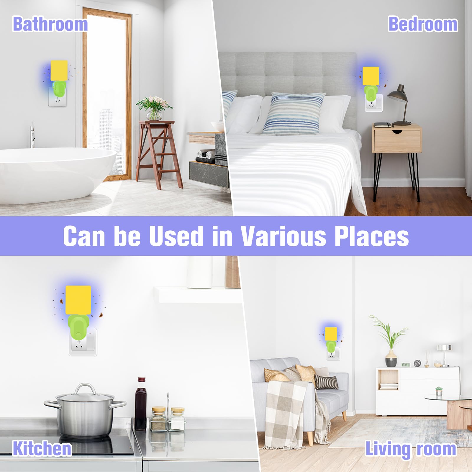 Pestvanish Flying Insect Trap Plug-In, Indoor Mosquito & Gnat Killer, Safe Non-Toxic UV Light Fly Catcher, Night Light Bug Trap with Sticky Pad for Flies, Gnats, Moths (4 Pack, White)